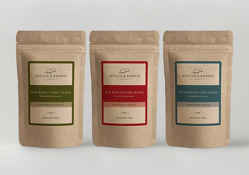 Our wholebean coffee comes in elegant kraft paper bags, two different pack sizes (1kg/227g) and three signature blends: